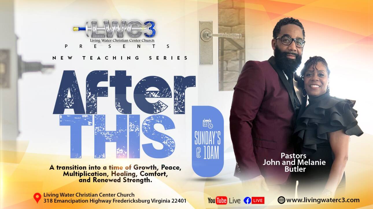 “On July 7, 2013, a progressive journey that began with a word from God in 2008 in Lorton, Virginia, came to pass. At that moment, God spoke the name “Living Water Christian Center Church” (John 4:10v) and told pastor John, “it was to be established in Fredericksburg, Virginia.” He told Pastor John, “this journey would require unwavering faith and absolute trust in him.”